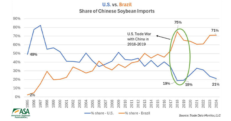This isn’t a new situation for Trump, who had to bail out American farms with over $30 billion during his first term due to his trade war with China. That confrontation led to a permanent shift in China's agricultural purchases, with more coming from Brazil and less from the US. A situation that has escalated with the latest trade wars.