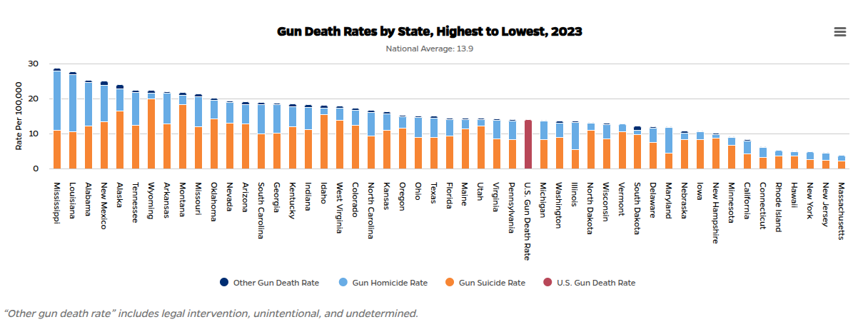 Some will attempt to dismiss this chart because gun deaths include suicides, and apparently, those are a tragedy we should ignore. So here is a chart that separates the forms of gun deaths, along with a map of US states by the strength of their gun laws, to make it clear that stronger gun laws reduce both homicides and suicides.