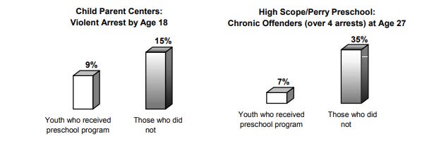 Multiple studies have found that children who do not attend any preschool are more likely to be arrested for committing a violent crime by the time they become an adult than children who do attend preschool.